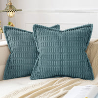 Miulee Blue Gray Corduroy Decorative Throw Pillow Covers Pack Of 2 Soft Striped Pillows Pillowcases With Broad Edge Winter Moder