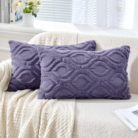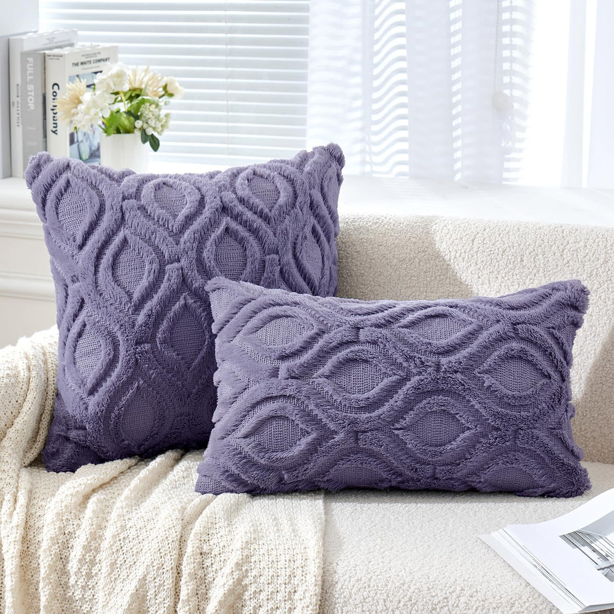 Miulee Blue Purple Throw Pillow Covers 12X20 Inch, Soft Winter Plush Faux Wool Couch Pillow Covers Set Of 2 Decorative Farmhouse Boho Throw Pillows For Sofa Living Room Bed
