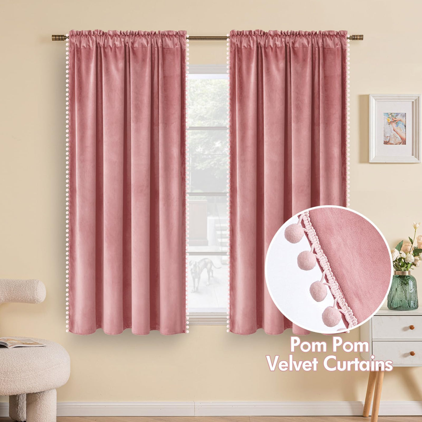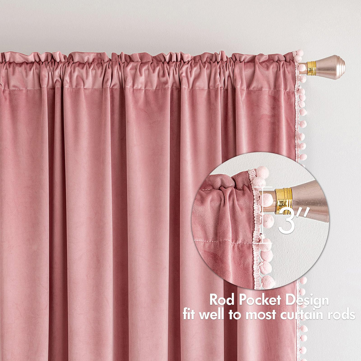 Miulee Pom Pom Velvet Curtains Look Very Pretty And Luxurious.All The Pom-Poms Are Sewn Tightly On Both Sides Of The Curtain And Will Not Fall Out.Using High-Density Velvet,These Curtains Perform Exquisite And Silky Touch.Smoothly To Pull And Even Friendly To Children'S Tender Skin.