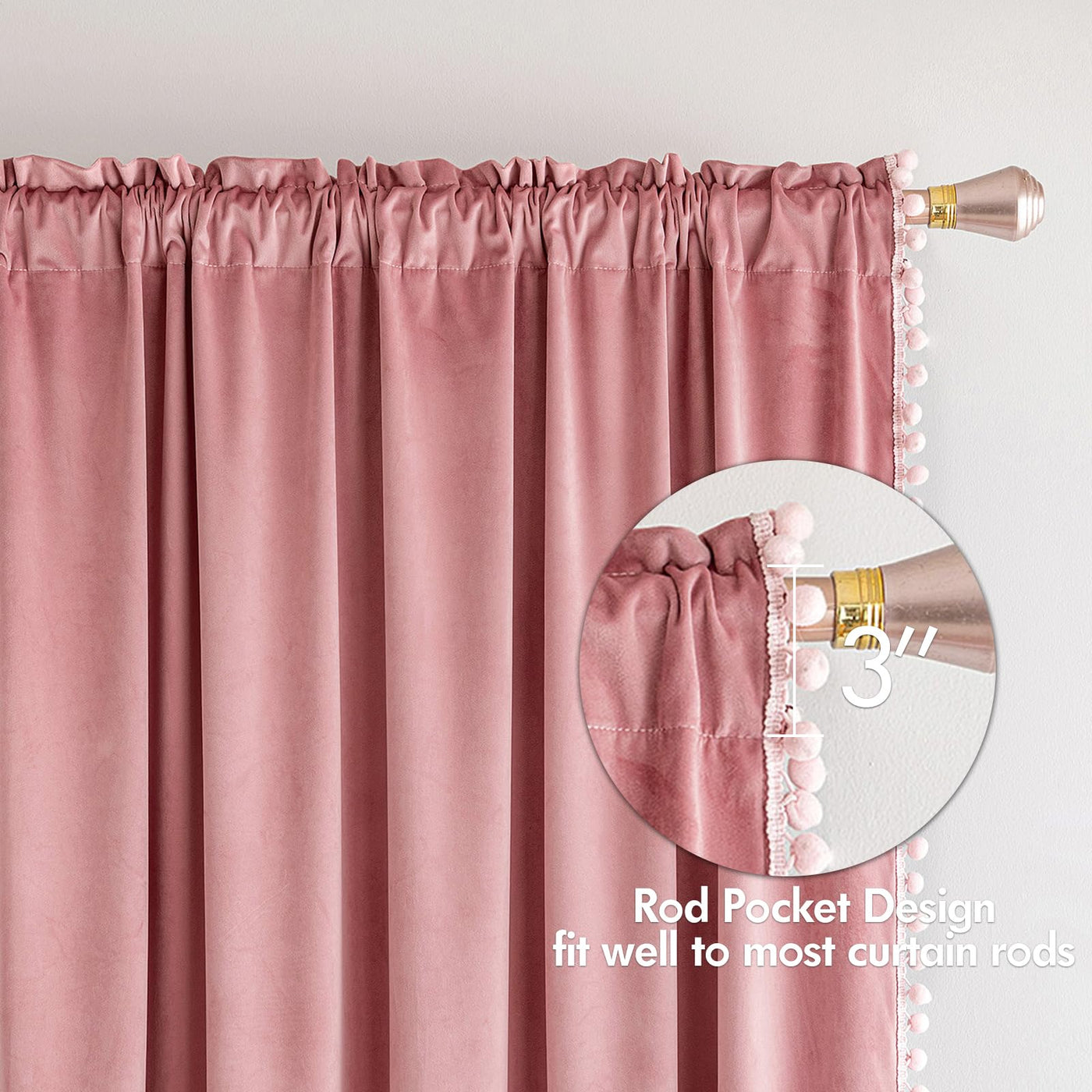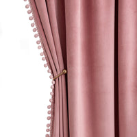 Miulee Blush Pink Pom Pom Velvet Curtains For Bedroom/Living Room Darkening Thermal Insulating 96 Inches Long Blackout Curtains