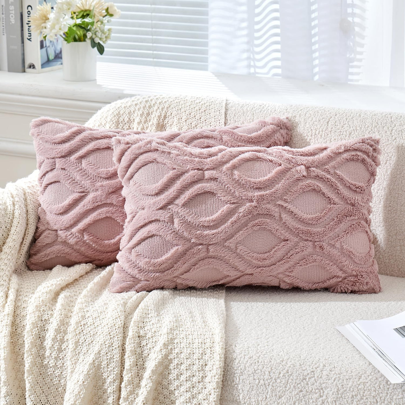 Miulee Blush Pink Valentines Throw Pillow Covers 12X20 Inch, Soft Spring Plush Faux Wool Couch Pillow Covers Set Of 2 Decorative Farmhouse Boho Throw Pillows For Sofa Living Room Bed