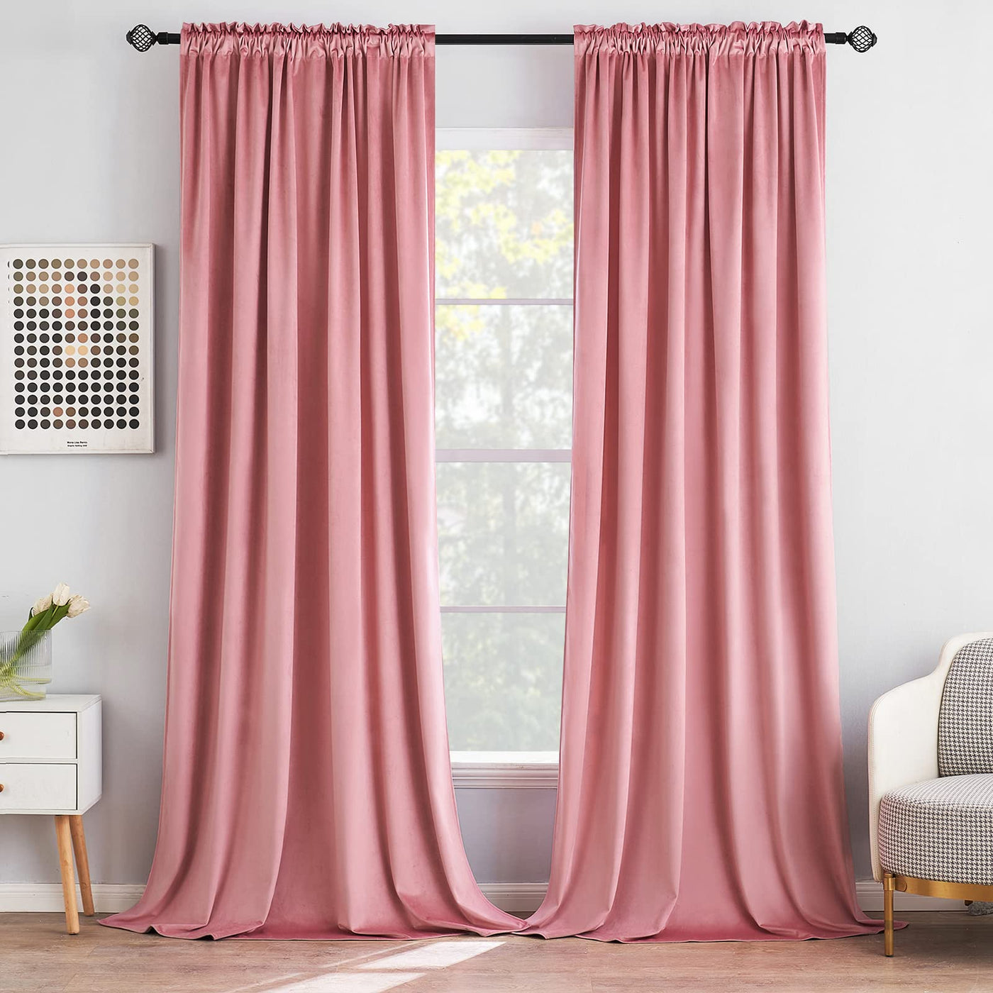 Miulee Blush Pink Velvet Curtains Thermal Insulated Blackout Curtain Drapes For Bedroom Living Room Darkening 90 Inches Long Curtains Panels Rod Pocket Set Of 2