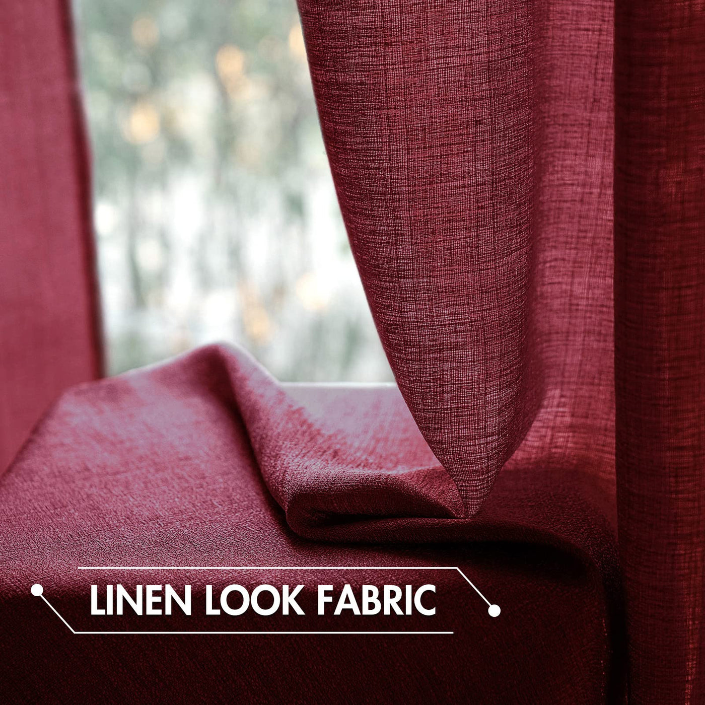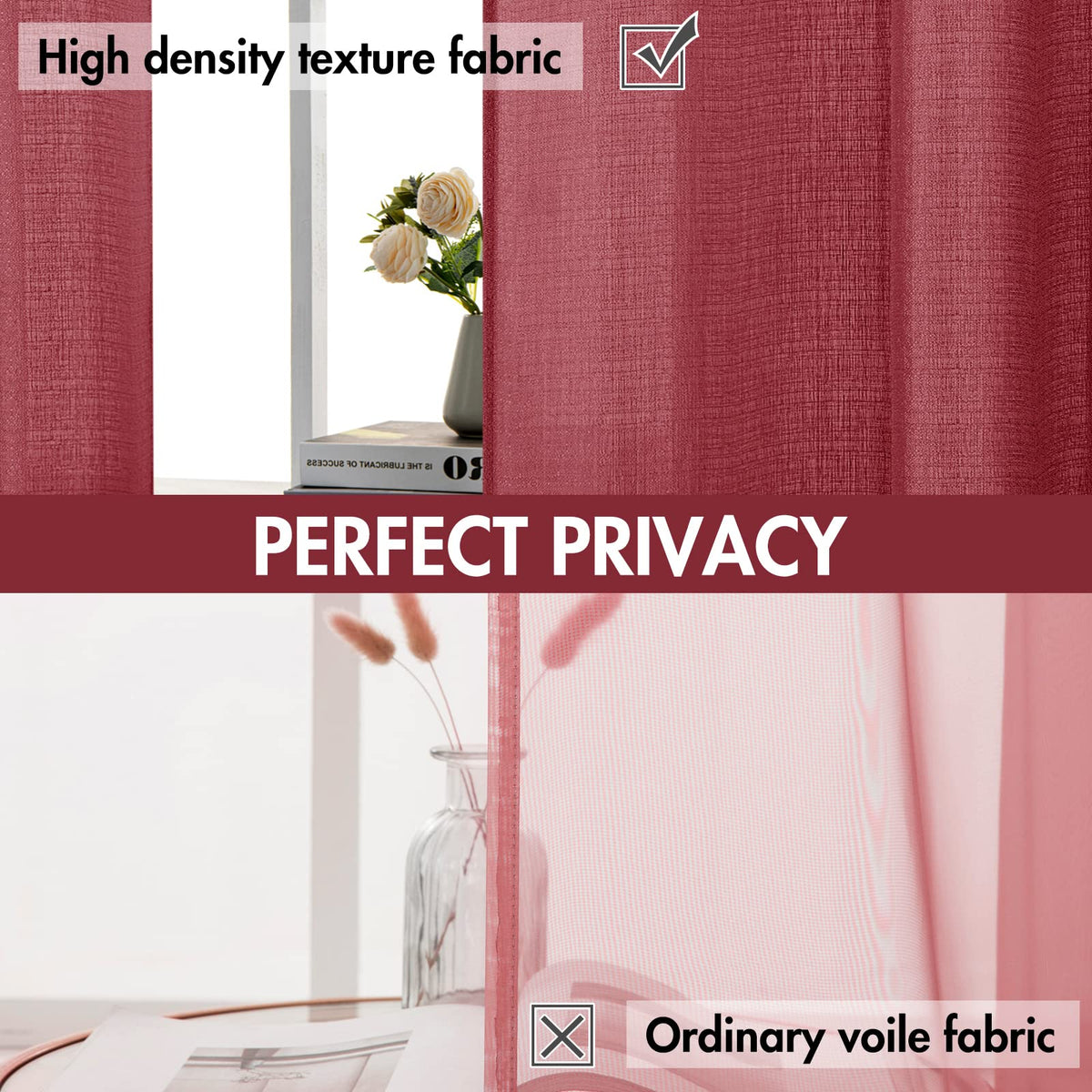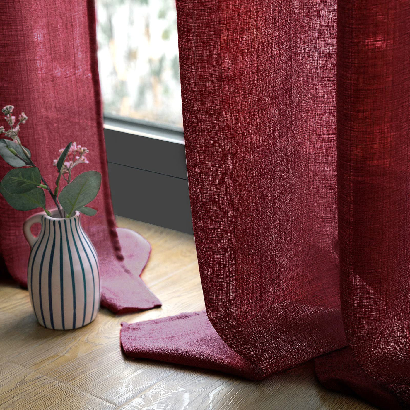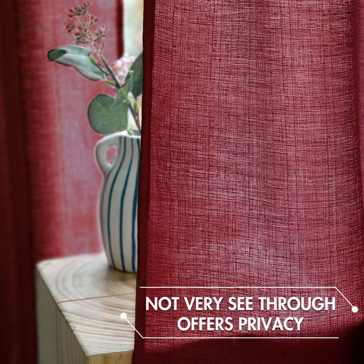 Miulee Burgundy Red Faux Linen Textured Semi Sheer Curtains For Bedroom Living Room 84 Inches Length 2 Panels Set Grommet Light