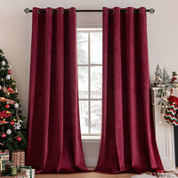 Miulee Burgundy Velvet Curtains For Christmas Solid Soft Red Blackout Curtains Grommet Top Thermal Soundproof Room Darkening Cur