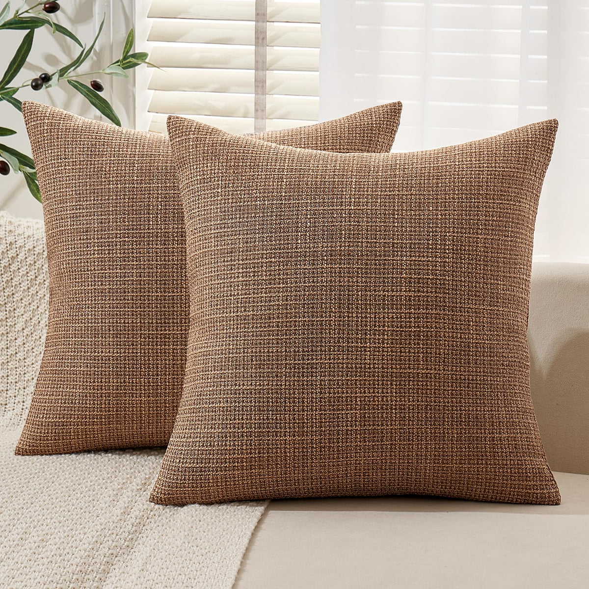 Miulee Burlap Linen Throw Pillow Covers 18X18 Inch Brown Decorative Pillow Covers Modern Farmhouse Pillowcases Soft Accent Cushi
