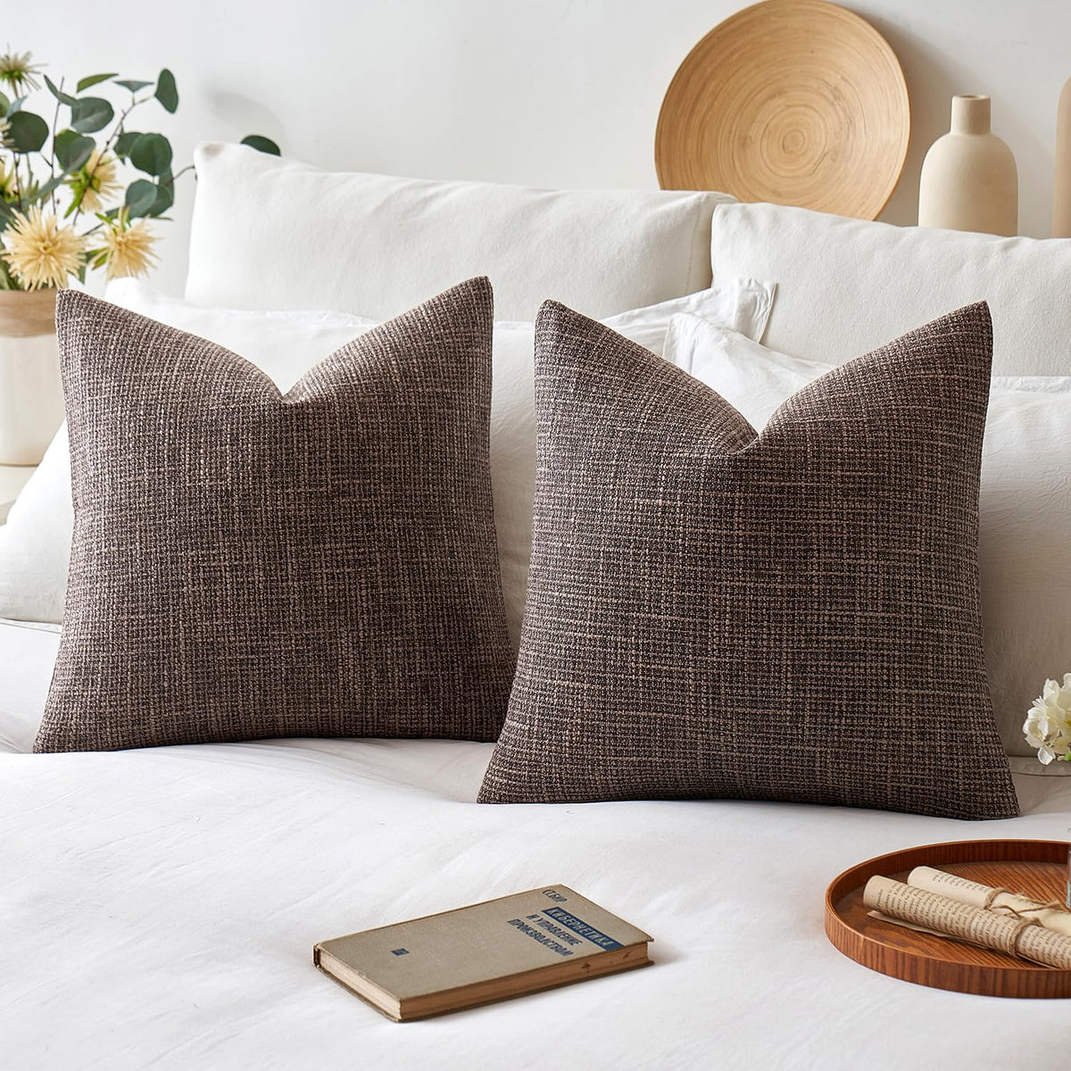Miulee Burlap Linen Throw Pillow Covers 18X18 Inch Dark Coffee Decorative Pillow Covers Modern Farmhouse Pillowcases Soft Accent