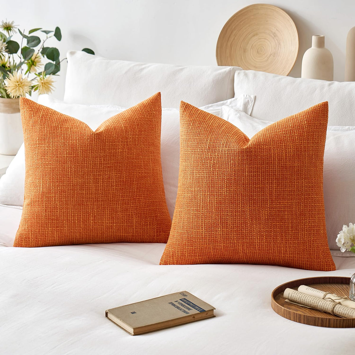 Miulee Burlap Linen Throw Pillow Covers 18X18 Inch Fall Orange Decorative Pillow Covers Modern Farmhouse Pillowcases Soft Accent