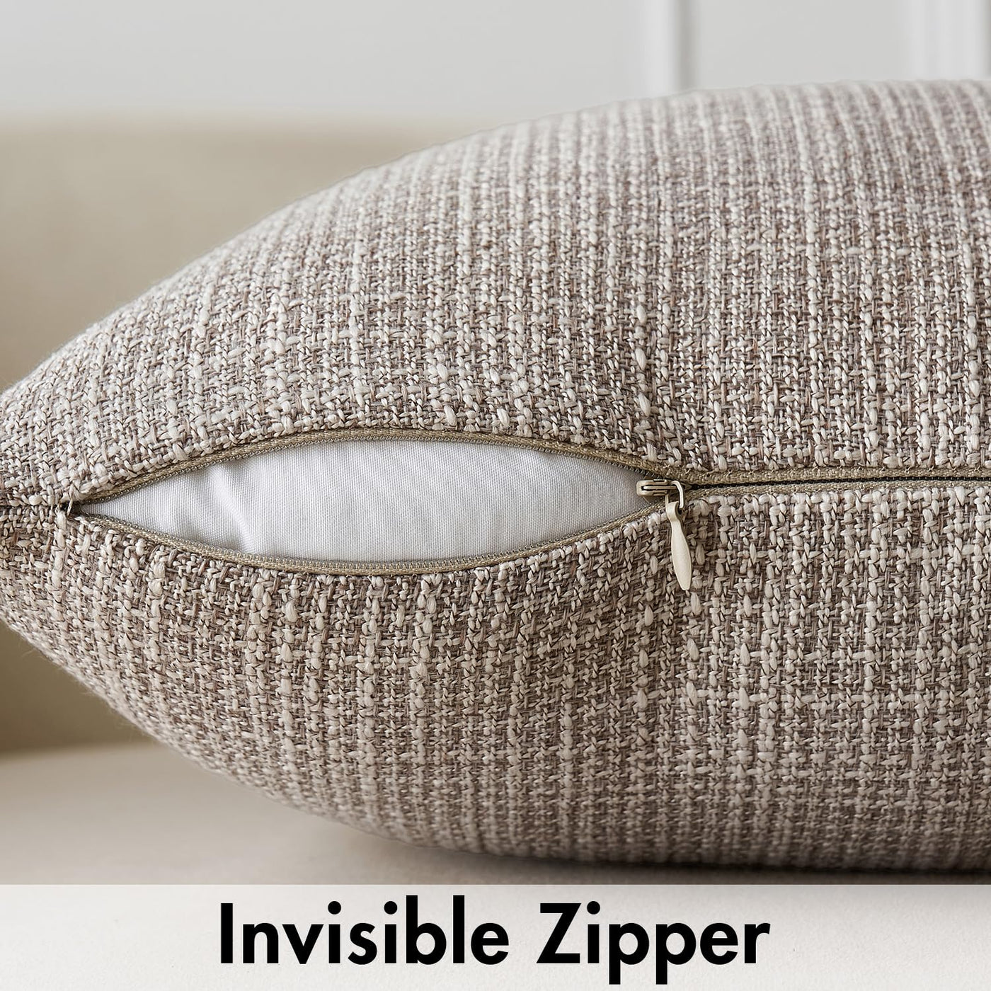 Q: Do these pillow covers have a zipper closure?A: Yes, the MIULEE Burlap Linen Throw Pillow Covers feature an invisible zipper closure that allows for easy insertion and removal of pillow inserts while blending seamlessly with the fabric.