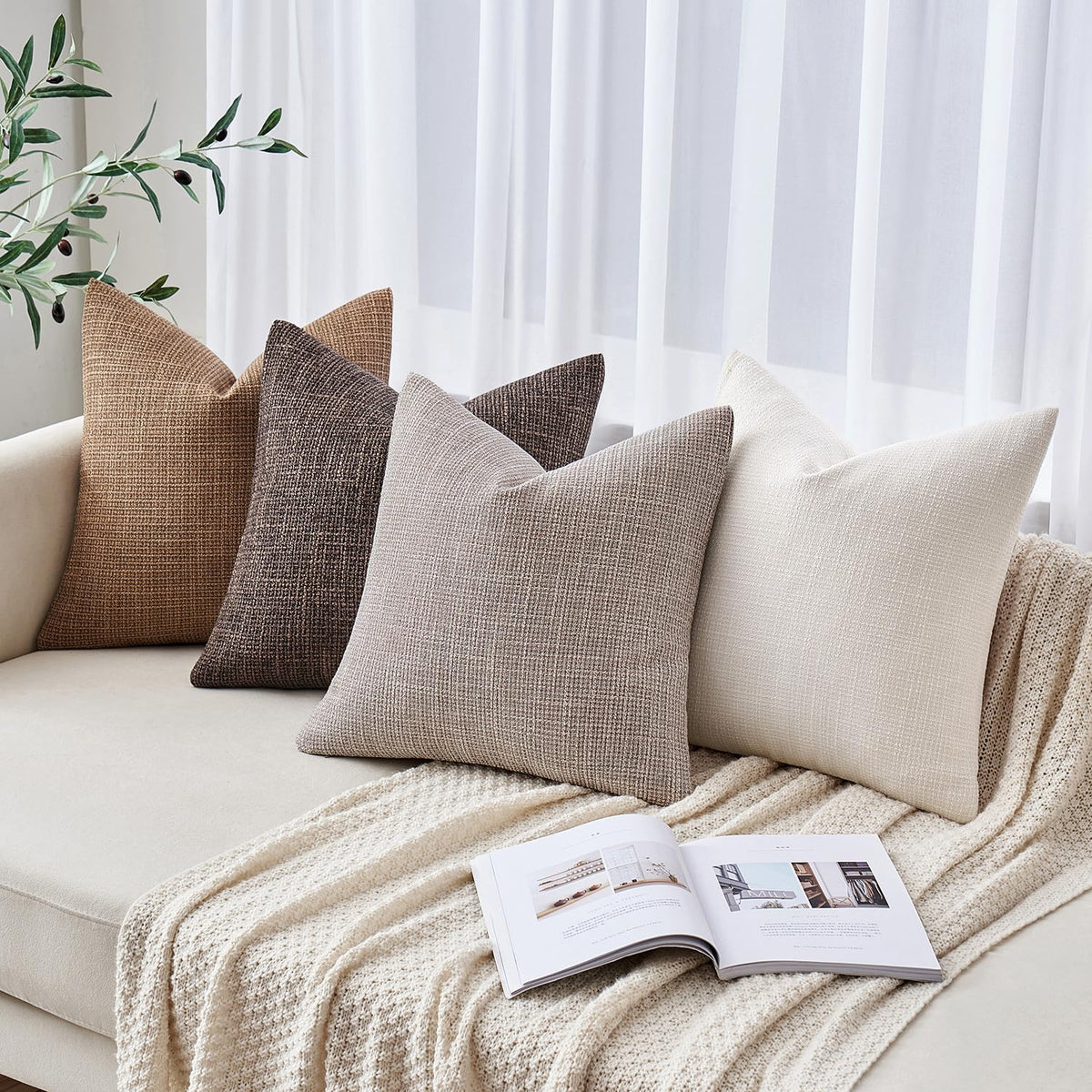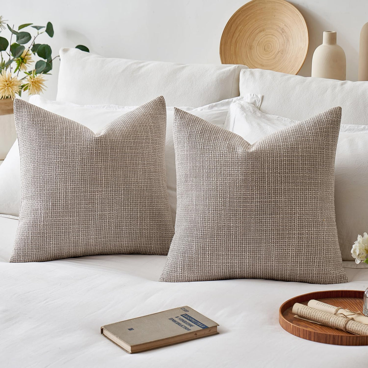 Miulee Burlap Linen Throw Pillow Covers 18X18 Inch Khaki Decorative Pillow Covers Modern Farmhouse Pillowcases Soft Accent Cushi