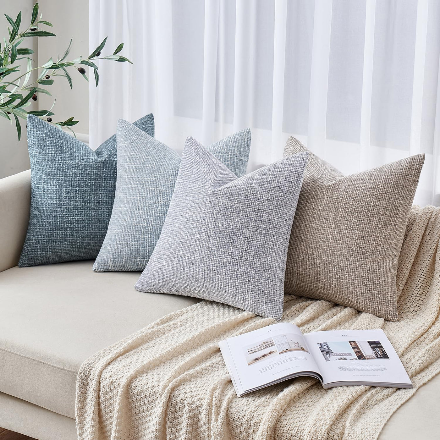 Miulee Burlap Linen Throw Pillow Covers 24X24 Inch Blue Decorative Pillow Covers Modern Farmhouse Pillowcases Soft Accent Cushio