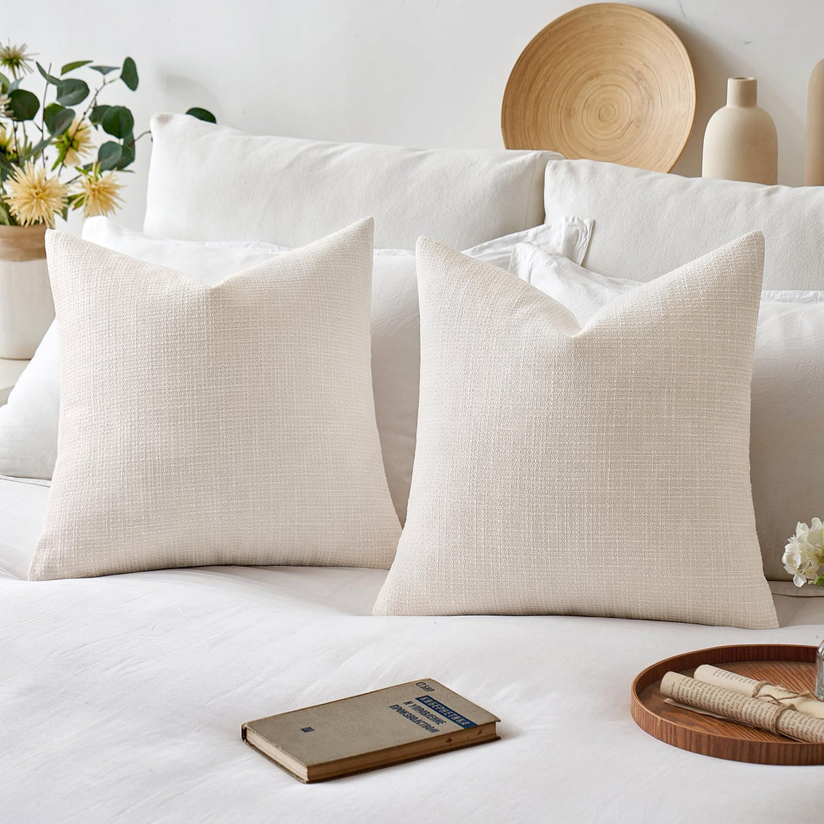 Miulee Burlap Linen Throw Pillow Covers 24X24 Inch Christmas Cream White Decorative Pillow Covers Modern Farmhouse Pillowcases S