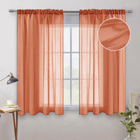 Miulee Burnt Orange Linen Textured Sheer Curtains 54 Inch Length For Bedroom/Living Room/Kitchen Semi Transparent Farmhouse Fall Decor Window Net Panels With Rod Pocket 2 Panels W 54 X L 54 Inches