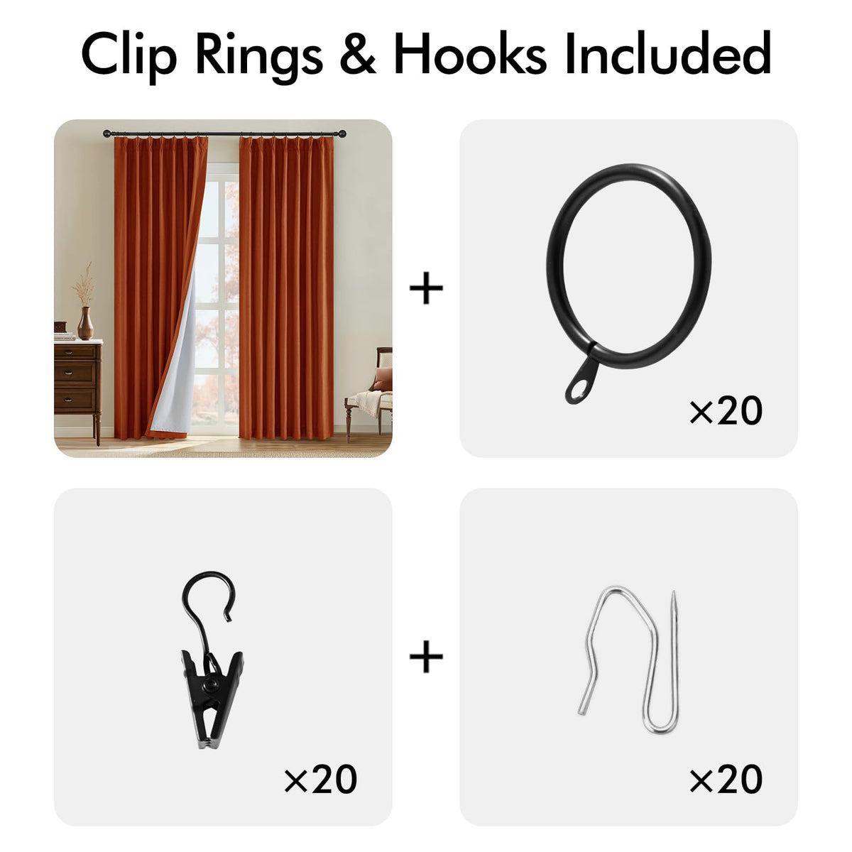 Q: How do I install these blackout curtains?A: These curtains can be installed in various ways, including pinch pleated and back tab styles. They come with 20 hooks and 20 curtain rings with clips for easy hanging.