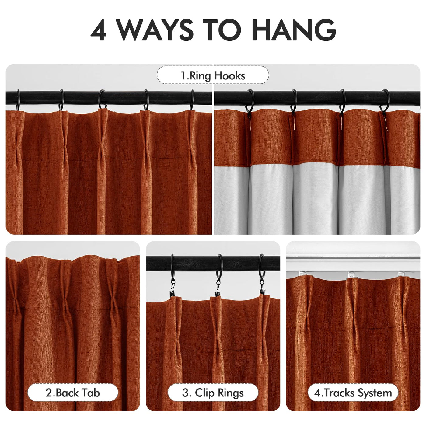 Miulee Burnt Orange Pinch Pleated 100% Blackout Linen Curtains For Bedroom, Room Darkening Rust Terracotta Fall Curtains 84 Inch