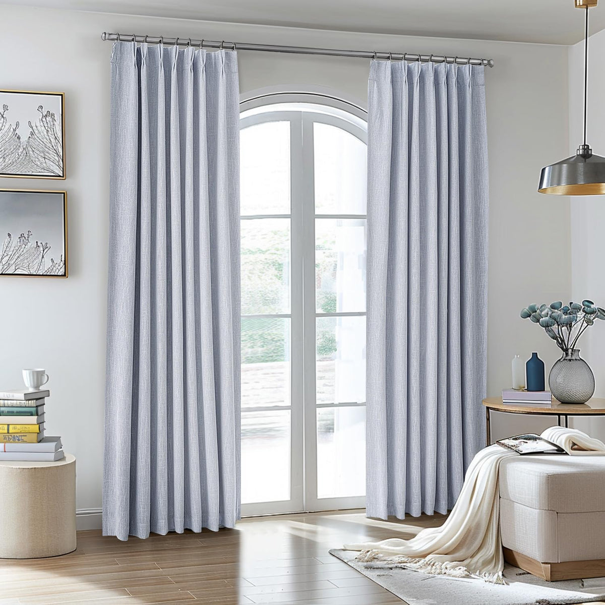 Miulee Chambray Blue Pinch Pleated 100% Blackout Linen Curtains 90 Inch Length 2 Panels Set, Pleat Curtain With Pin Hooks, Black