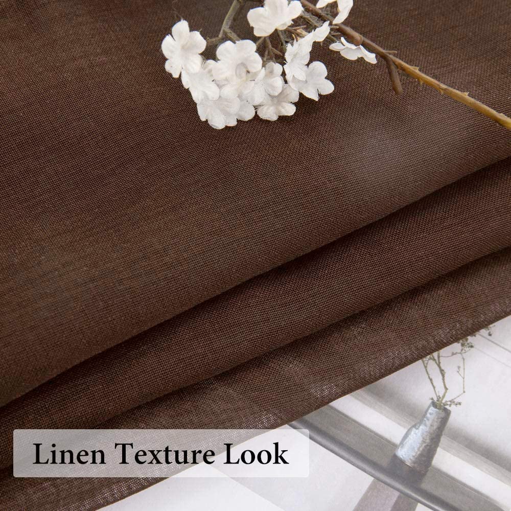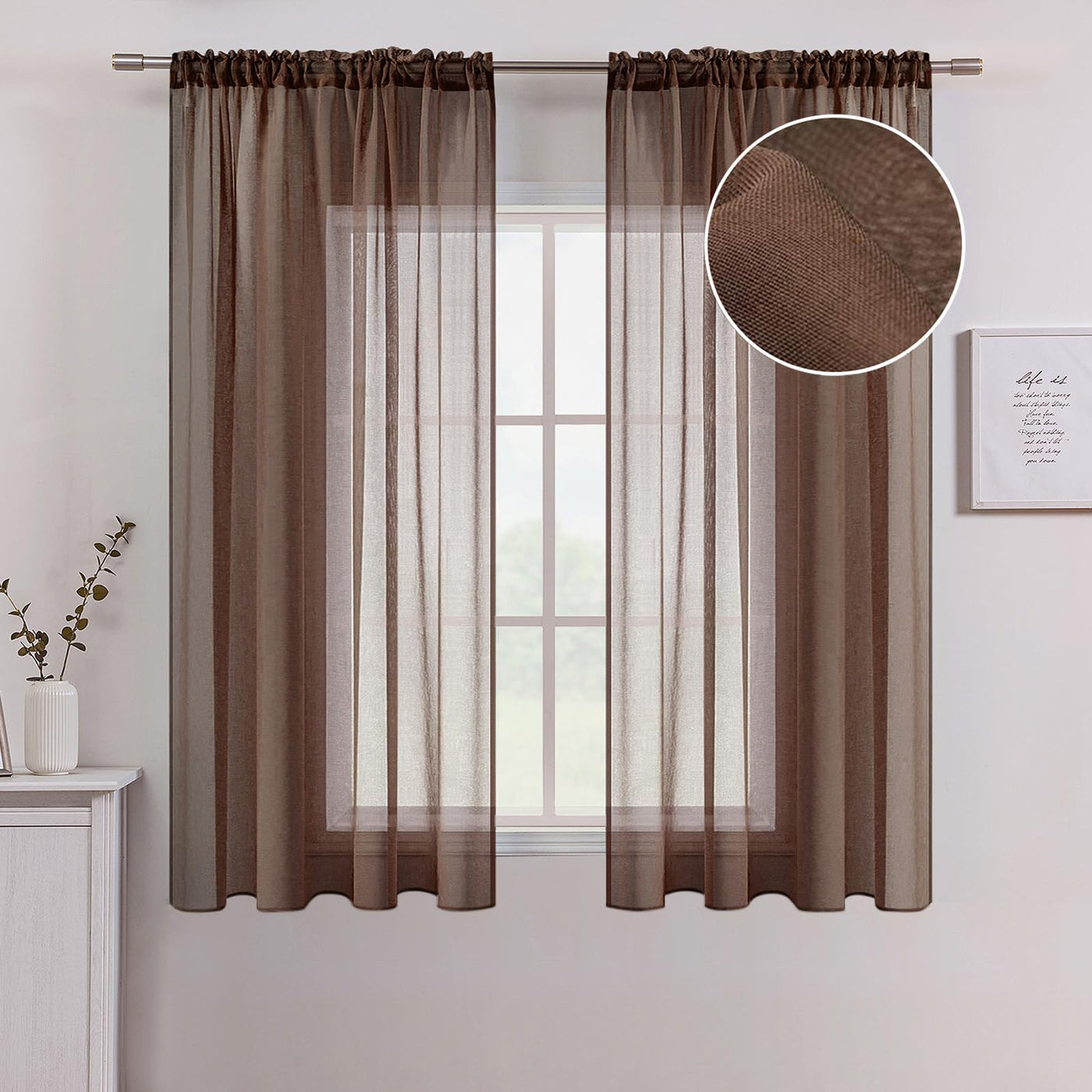 Miulee Chocolate Brown Linen Textured Sheer Curtains 63 Inch Length 2 Panels Set For Bedroom Living Room Semi Transparent Voile Farmhouse Window Drapes Rod Pocket W 54 X L 63 Inches Long