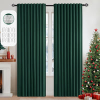 Miulee Christmas Hunter Green Back Tab Blackout Curtains 90 Inches Long 2 Panels Set For Living Room Bedroom, Rod Pocket/Pinch Pleat Thermal Insulated Room Darkening Pleated Light Blocking Drapes