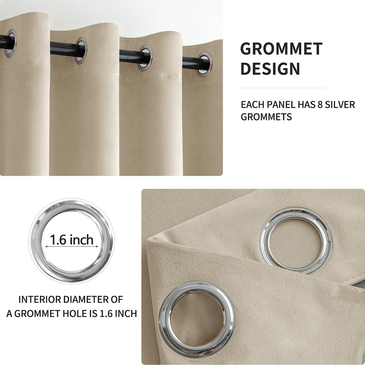 Miulee Elegant Velvet Curtains Beige Grommet Curtains Thermal Insulated Soundproof Room Darkening Blackout Curtains/Drapes For Girls & Ladys Living Room/Bedroom Decor 52 X 96 Inch 2 Panels