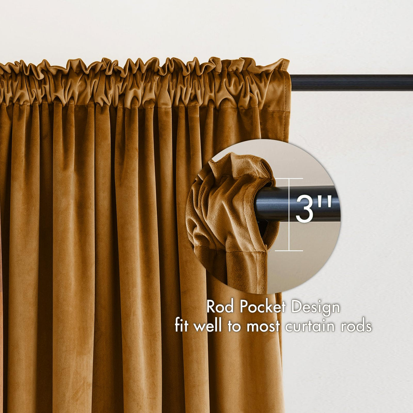 Miulee Golden Brown Velvet Curtains Thermal Insulated Blackout Curtain Drapes For Bedroom Living Room Darkening 108 Inches Long Curtains Panels Rod Pocket Set Of 2