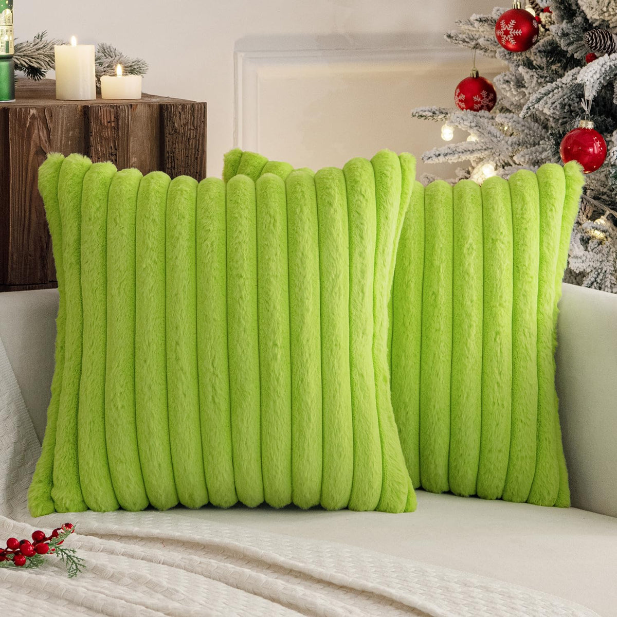 Miulee Green Throw Pillow Covers 20X20 Inch Set Of 2 Soft Pillowcases With Velvet Back Faux Rabbit Fur Cushion Covers Decorative Home Decor For Winter Couch Sofa Bedroom Livingroom