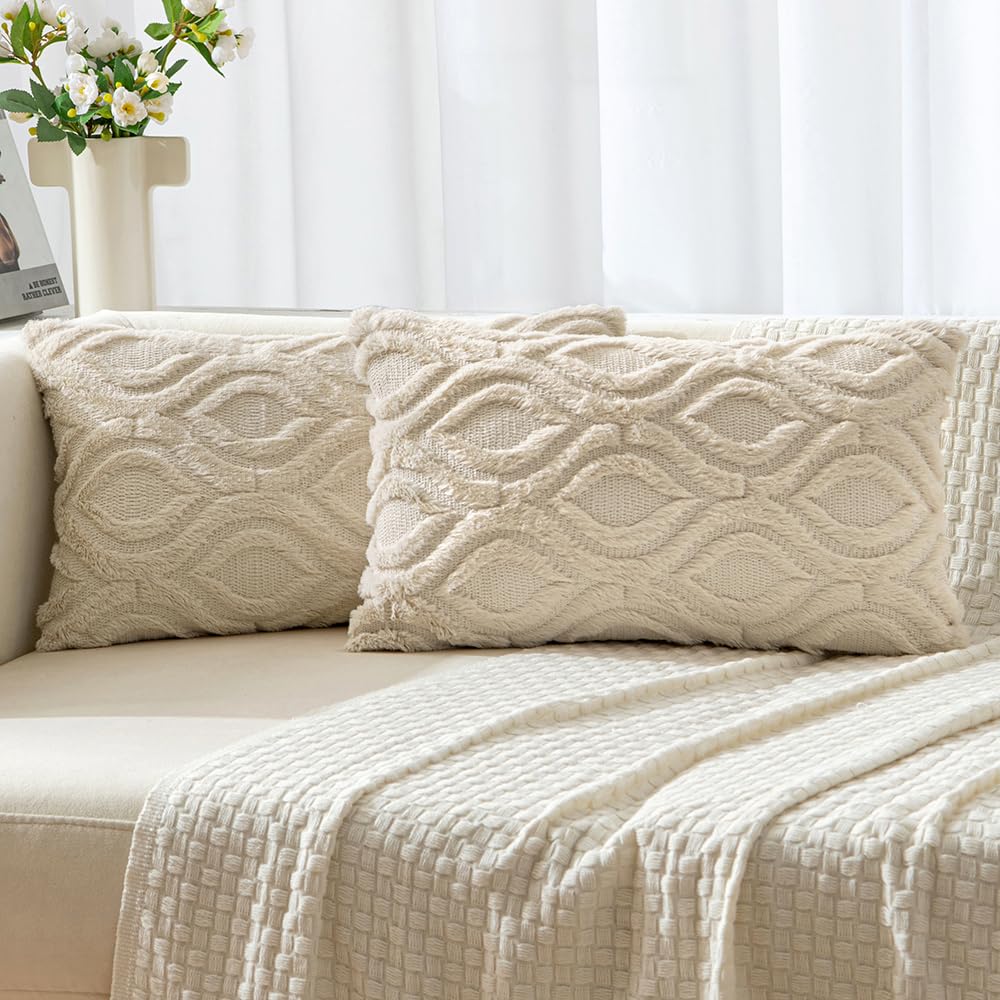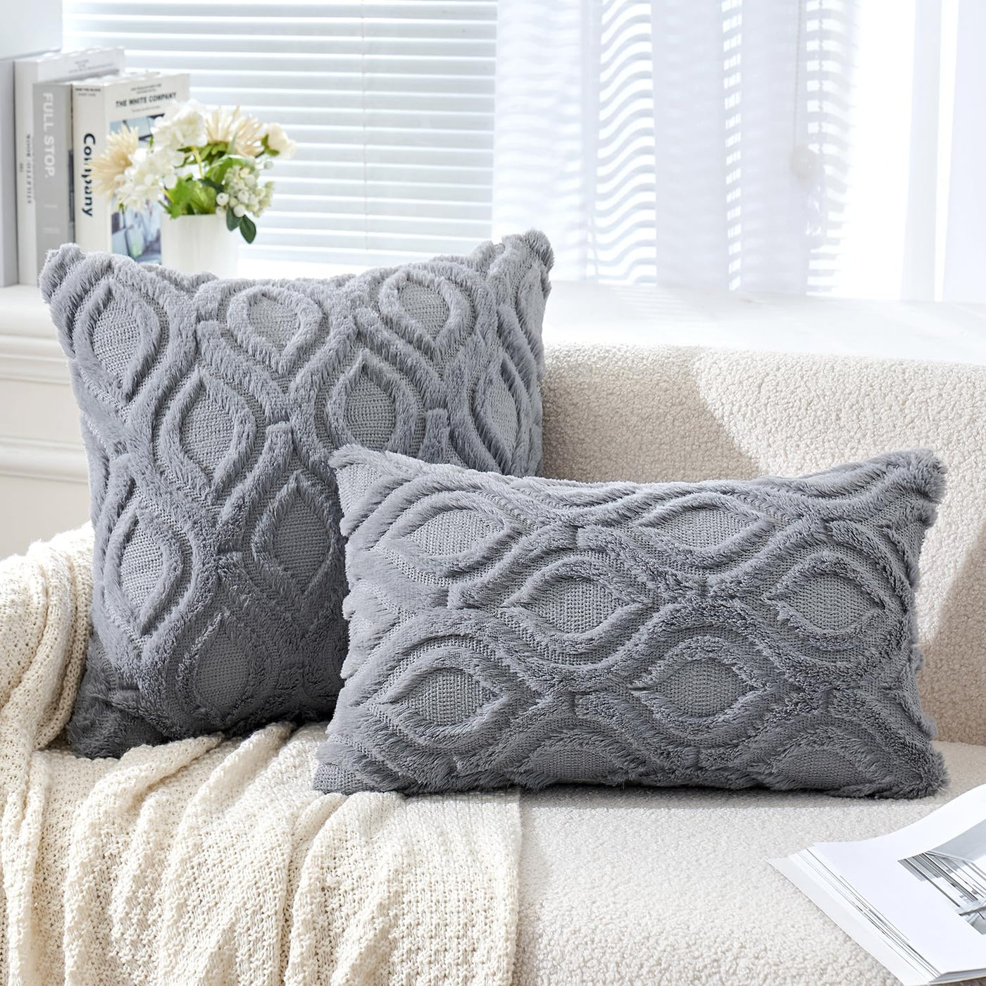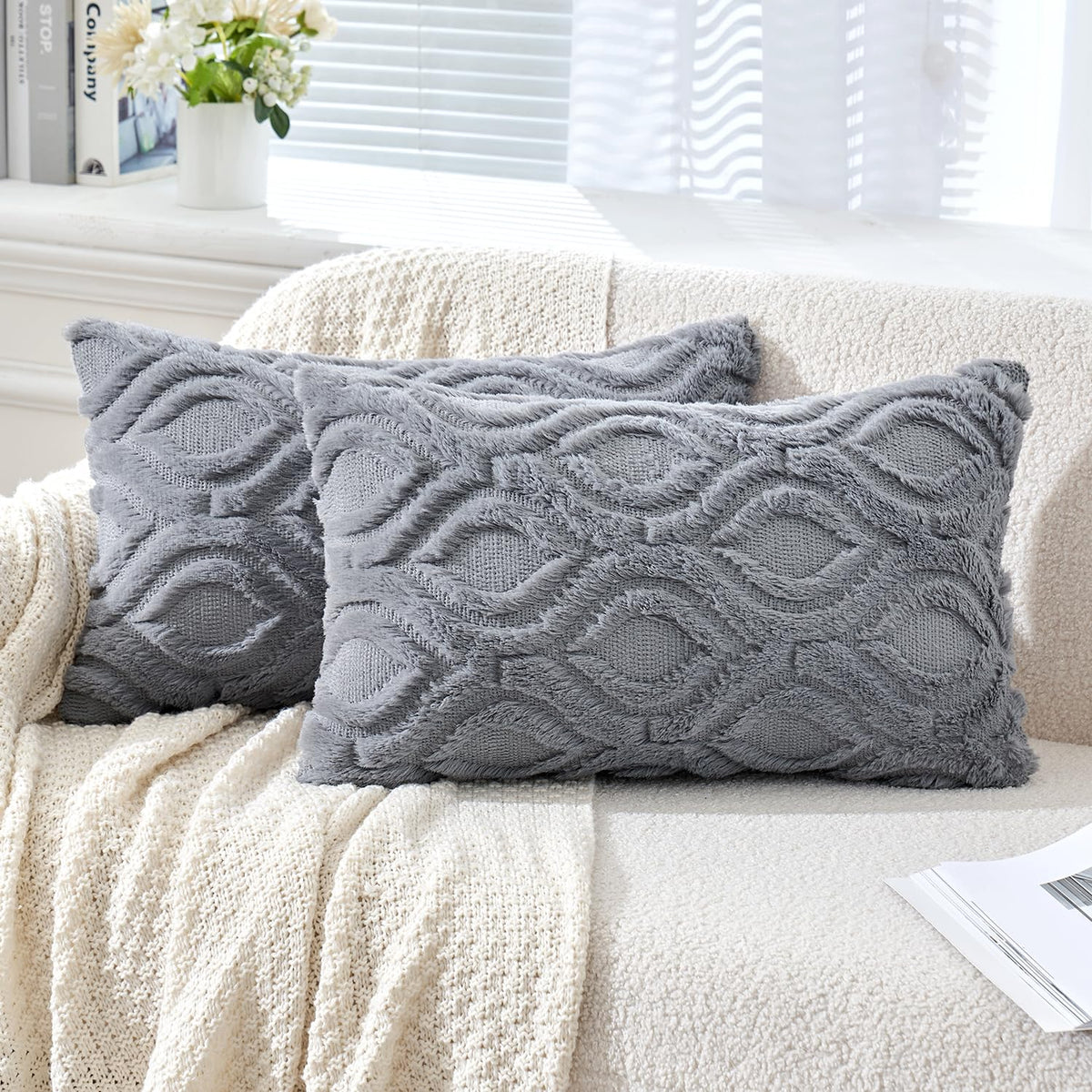 Miulee Grey Blue Throw Pillow Covers 12X20 Inch, Soft Winter Plush Faux Wool Couch Pillow Covers Set Of 2 Decorative Farmhouse Boho Throw Pillows For Sofa Living Room Bed