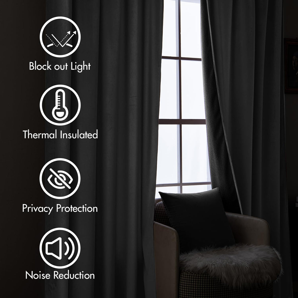 Q: Do these curtains block sunlight effectively?A: Yes, these curtains are crafted from thick velvet material that can block up to 80% of sunlight, making them ideal for room darkening and energy saving in both summer and winter.