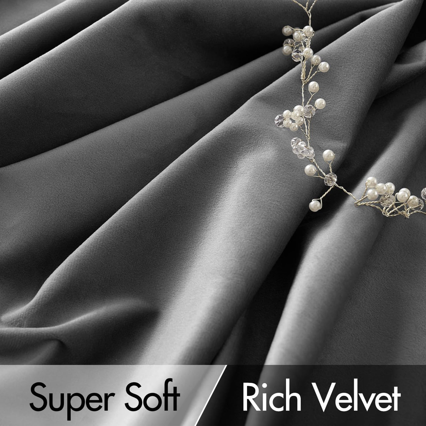 Miulee Grey Velvet Curtains 96 Inches Long 2 Panels - Luxury Pinch Pleated Room Darkening Window Drapes For Bedroom Living Room