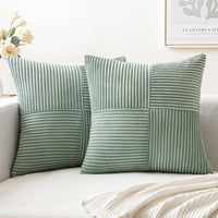 Miulee Greyish Green Corduroy Pillow Covers Pack Of 2 Boho Decorative Spliced Throw Pillow Covers Soft Solid Couch Pillowcases C