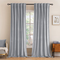 WELL MADE: Sold as 2 panels, each panel is W52' x L108', and W104' x L108' in total. Can be hung separately, or hung together with sheer curtains in MIULEE. HANGING OPTIONS: Each curtain panel has 2-in-1 top style design: rod pocket and back tab. With 3-inch inner diameter fit most standard rod. Curtains also can be hung with clip rings. 3 ways meet your various needs. LUXURY APPEARANCE: MIULEE velvet curtains are silky smooth, super soft, draped and heavyweight. They can be easily integrated into any style setting to make your room look more refined and elegant. FUNCTION: Craft from thick velvet, curtains can block 70-80% of the light (dark color works better). Also, these drapes can keep heat down in summer or keep cold out in winter to achieve smart energy saving. And these panels can provide privacy, reduce noise, which help to create a quiet sleeping environment EASY CARE: Machine washable in cold water, gentle cycle, tumble dry. Cool iron if needed. Use steam iron on low heat from the back to remove creases/wrinkles. Do Not Bleach.
