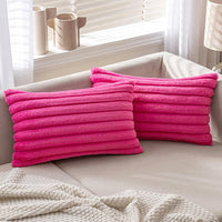 Miulee Hot Pink Throw Pillow Covers 12X20 Inch Set Of 2 Fuzzy Striped Soft Pillowcase With Velvet Back Faux Rabbit Fur Cushion C