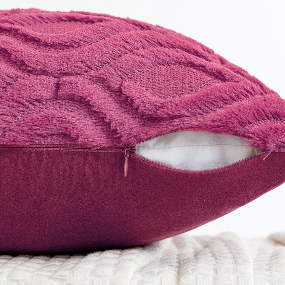 Miulee Hot Pink Throw Pillow Covers 18X18 Inch, Soft Winter Plush Faux Wool Couch Pillow Covers Set Of 2 Decorative Farmhouse Boho Throw Pillows For Sofa Living Room Bed