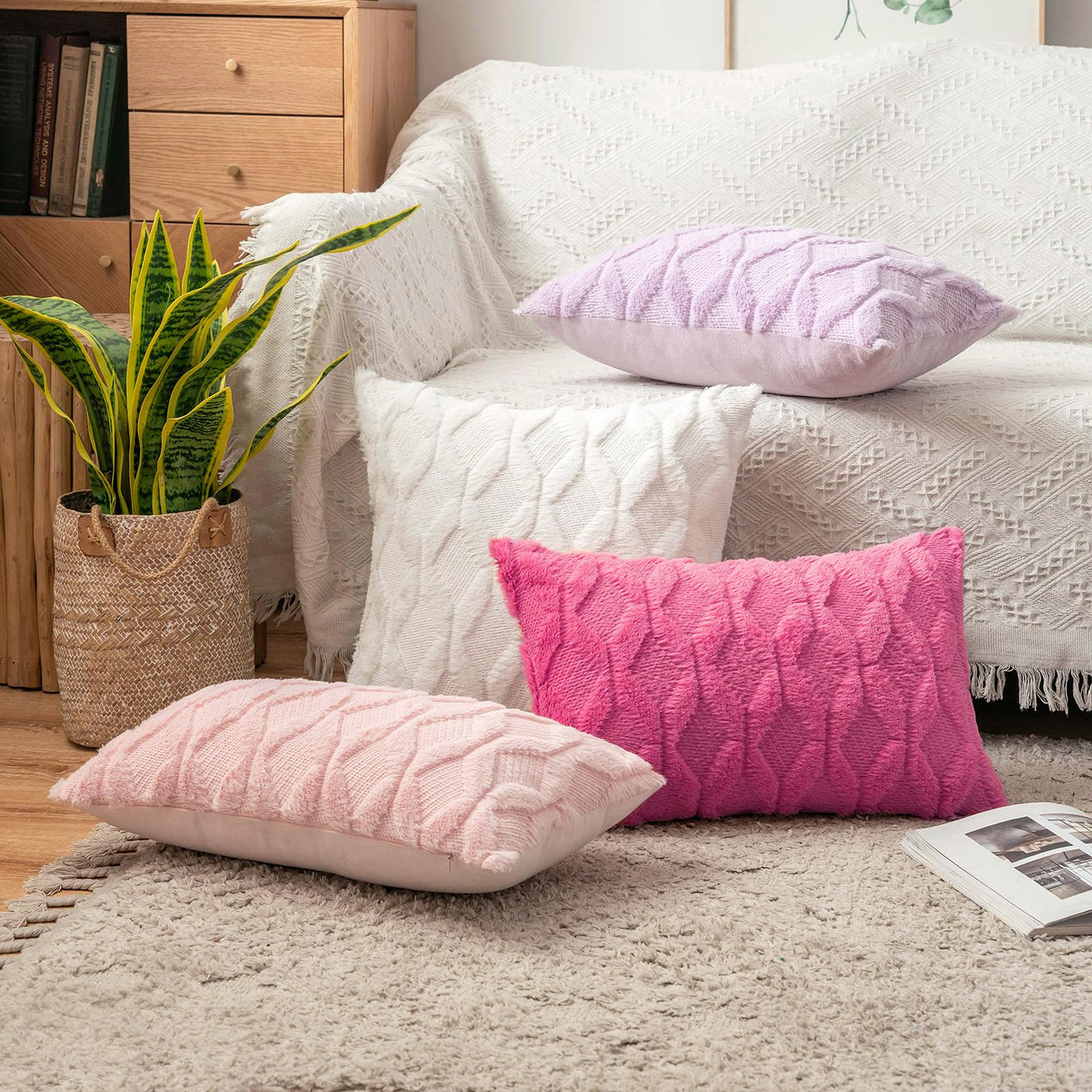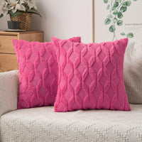 Miulee Hot Pink Throw Pillow Covers 18X18 Set Of 2 Spring Decorative Farmhouse Couch Throw Pillows Boho Shells Cute Soft Plush Wool Winter Pillowcases For Bedroom Living Room Sofa