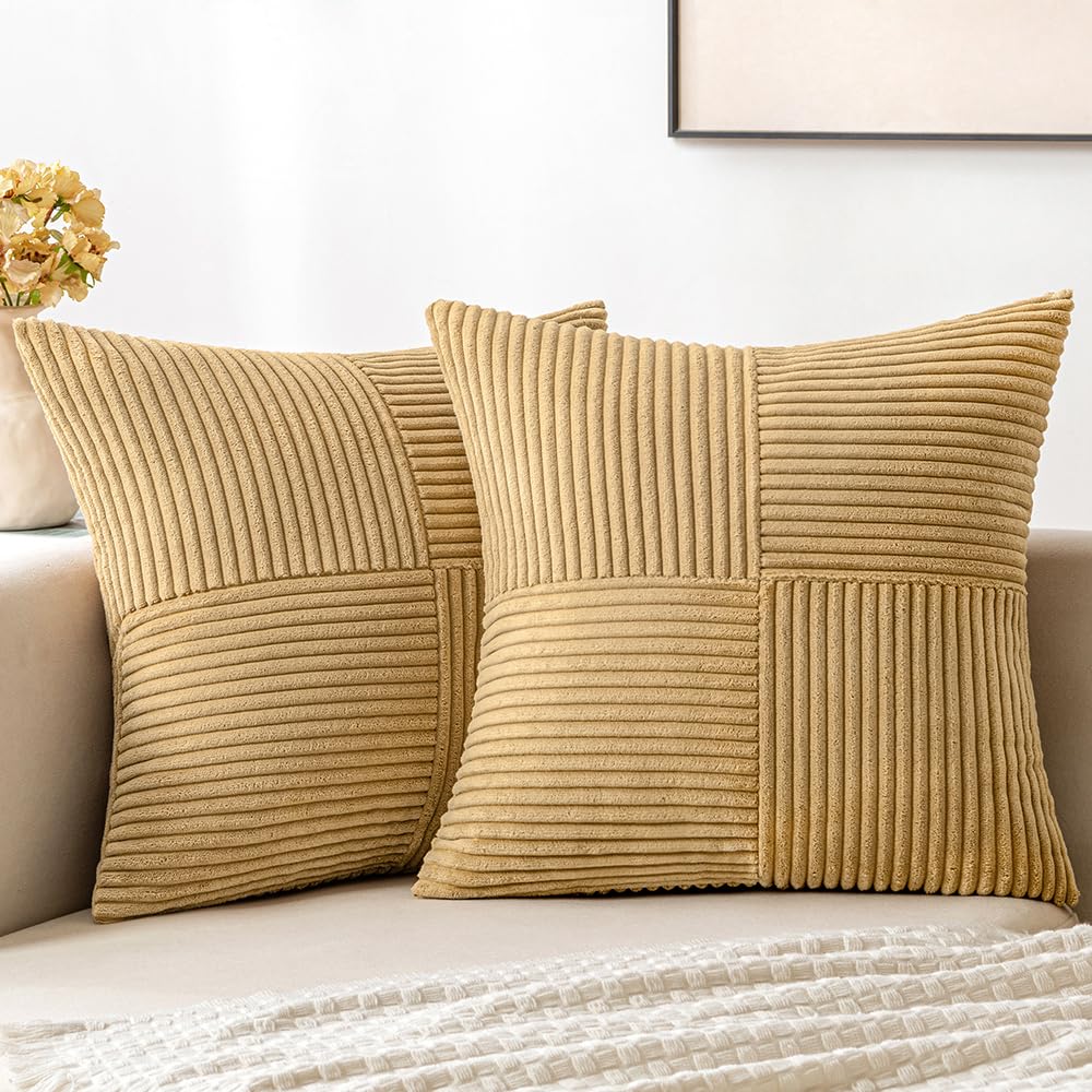 Miulee Khaki Corduroy Pillow Covers Pack Of 2 Boho Decorative Spliced Throw Pillow Covers Soft Solid Couch Pillowcases Cross Pat