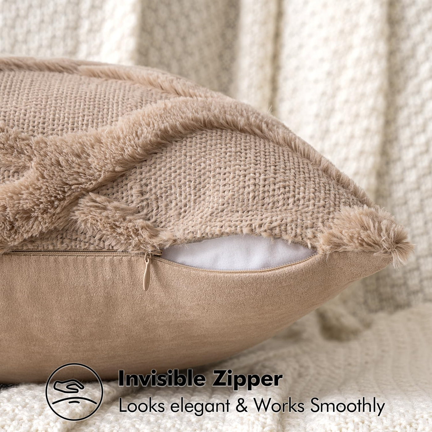 Miulee Khaki Decorative Throw Pillow Covers 20X20 Inch Set Of 2, Soft Winter Plush Faux Wool Couch Pillow Covers Farmhouse Throw Pillows For Couch Bed Sofa Living Room