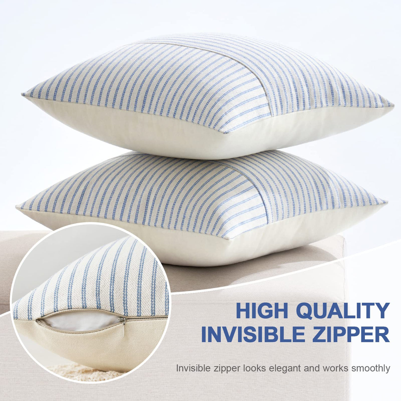 Miulee Light Blue And Beige Patchwork Farmhouse Pillow Covers 20X20 Inch, Pack Of 2 Striped Linen Spring Decorative Modern Accent Pillow Cases For Sofa Couch Bedroom