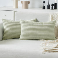 Miulee Light Green Corduroy Pillow Covers 12X20 Inch Set Of 2 Super Soft Boho Striped Pillow Covers Decorative Textured Throw Pi