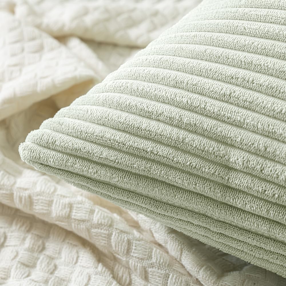 corduroy throw pillow covers decorative 20x20 inches light green pillow cases set of 2 square soft cozy comfy luxurious pillowcases home accent elegant couch bedroom chair sofa living room holiday teens girl woman indoor