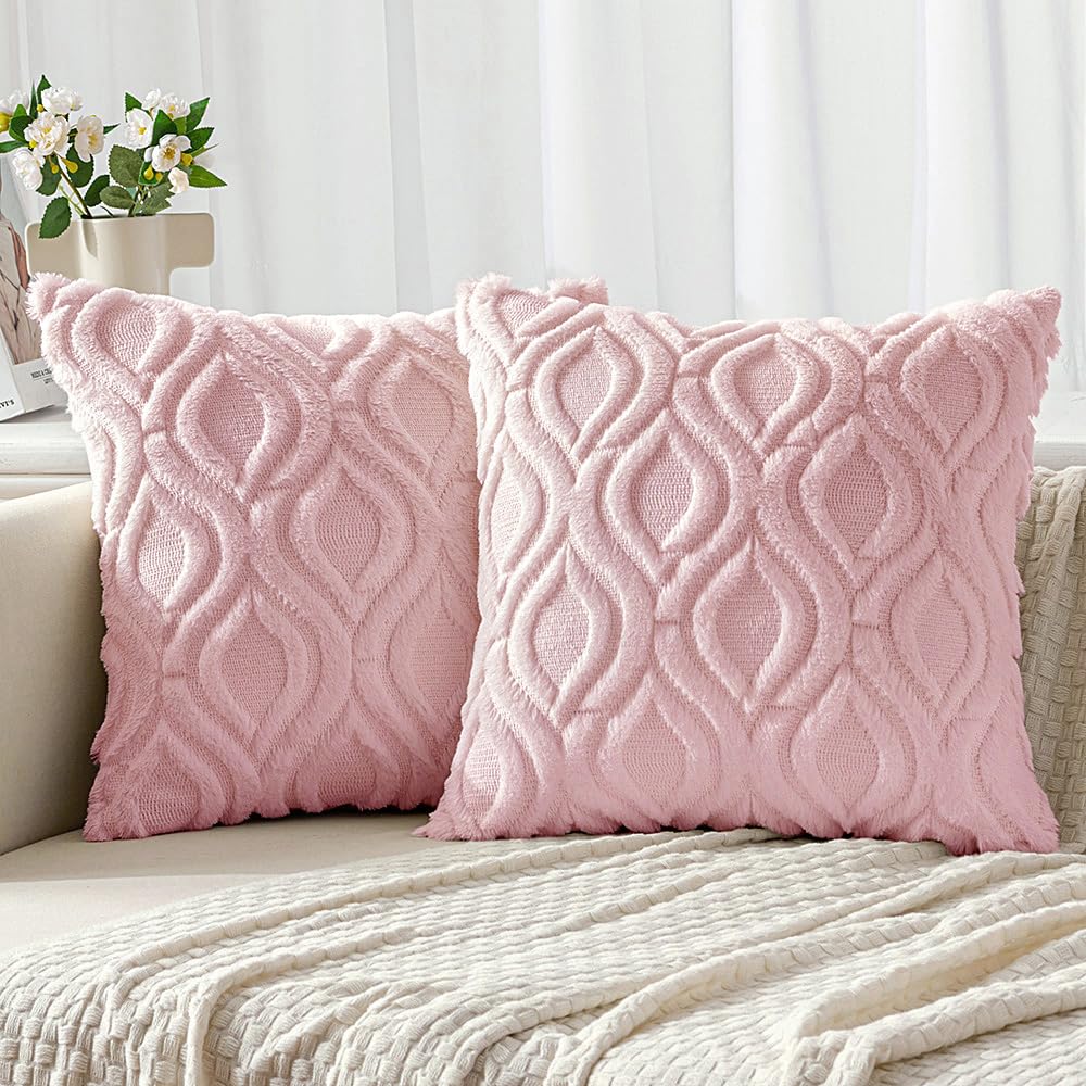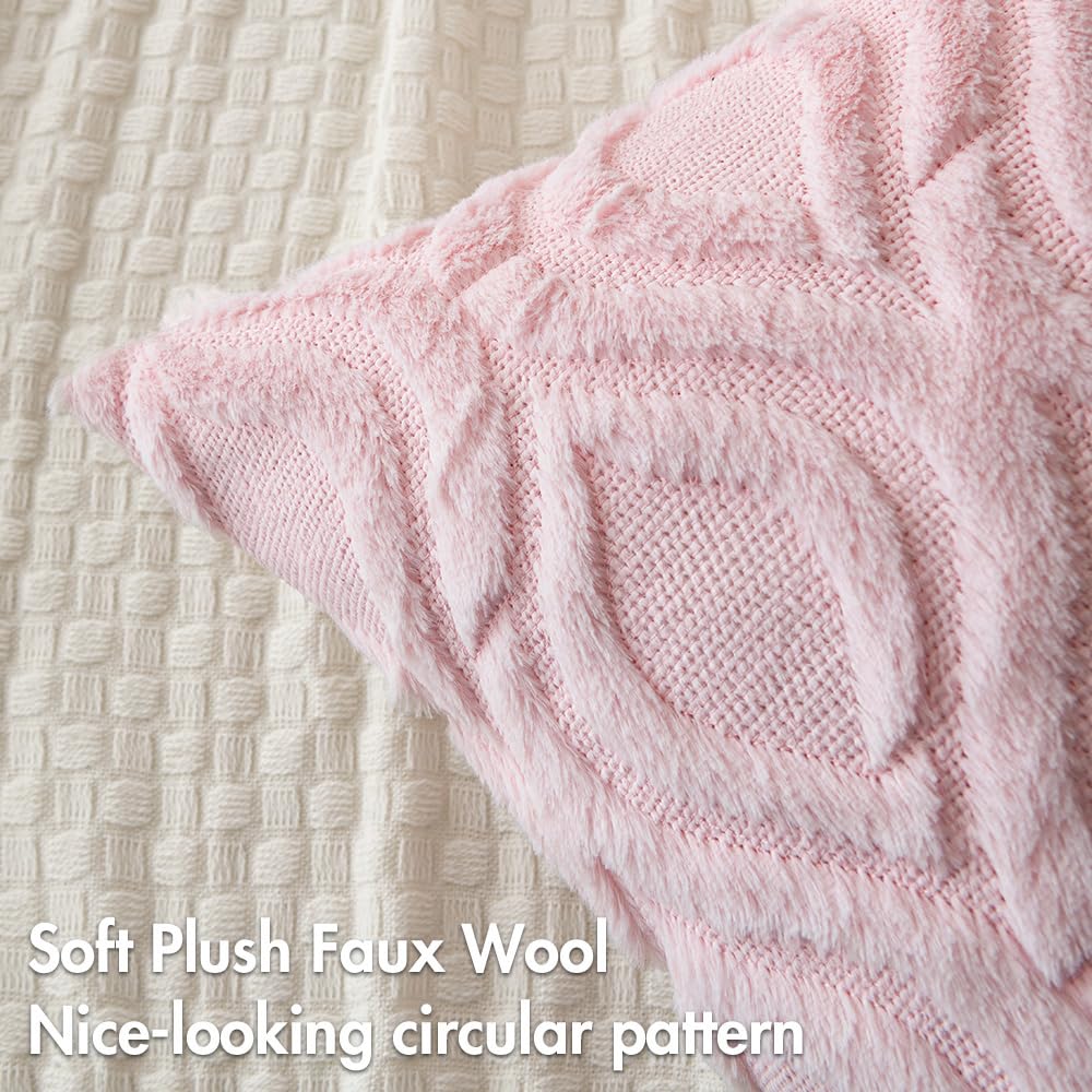 Miulee Light Pink Valentines Throw Pillow Covers 18X18 Inch, Soft Spring Plush Faux Wool Couch Pillow Covers Set Of 2 Decorative Farmhouse Boho Throw Pillows For Sofa Living Room Bed