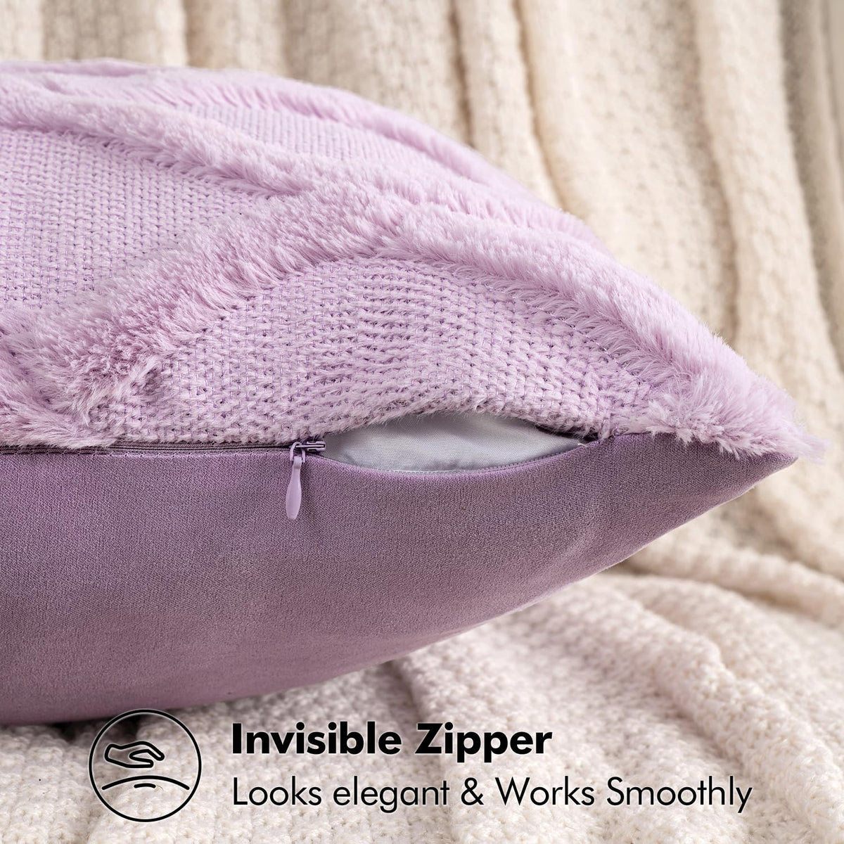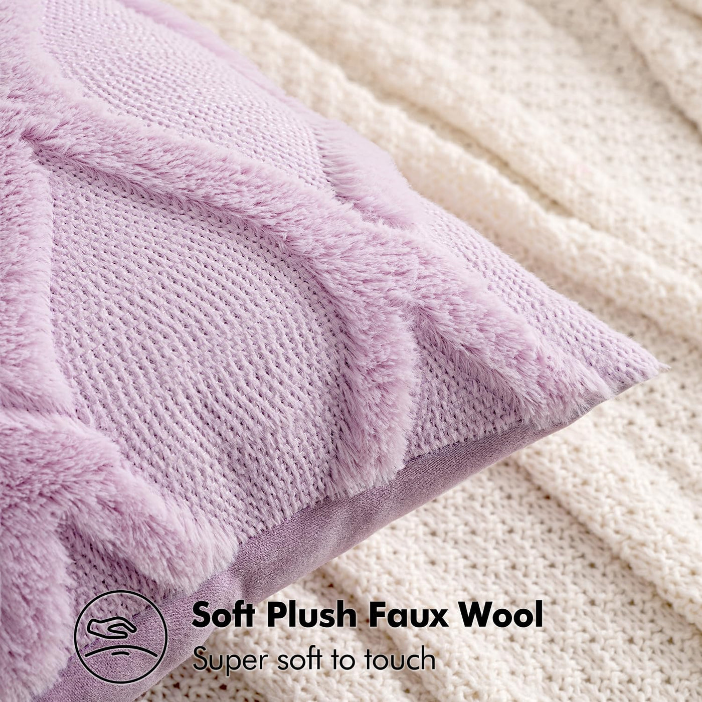 Miulee Light Purple Decorative Throw Pillow Covers 18X18 Inch Set Of 2, Soft Winter Plush Faux Wool Couch Pillow Covers Farmhouse Throw Pillows For Couch Bed Sofa Living Room