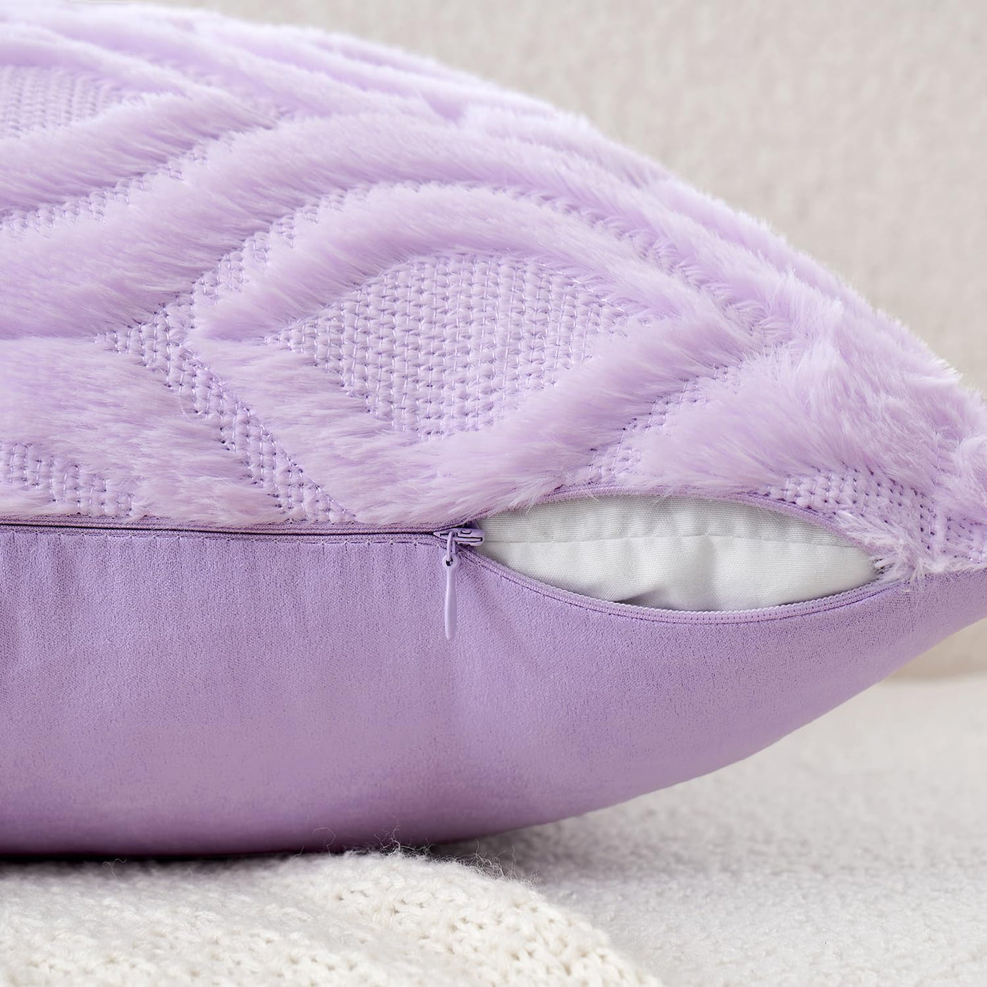 Miulee Light Purple Throw Pillow Covers 16X16 Inch, Soft Winter Plush Faux Wool Couch Pillow Covers Set Of 2 Decorative Farmhouse Boho Throw Pillows For Sofa Living Room Bed