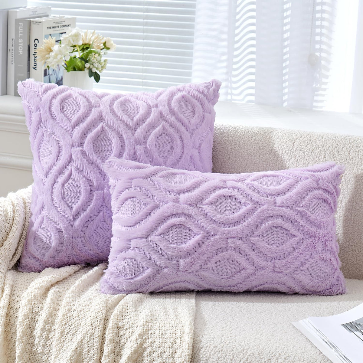 Miulee Light Purple Throw Pillow Covers 20X20 Inch, Soft Winter Plush Faux Wool Couch Pillow Covers Set Of 2 Decorative Farmhouse Boho Throw Pillows For Sofa Living Room Bed