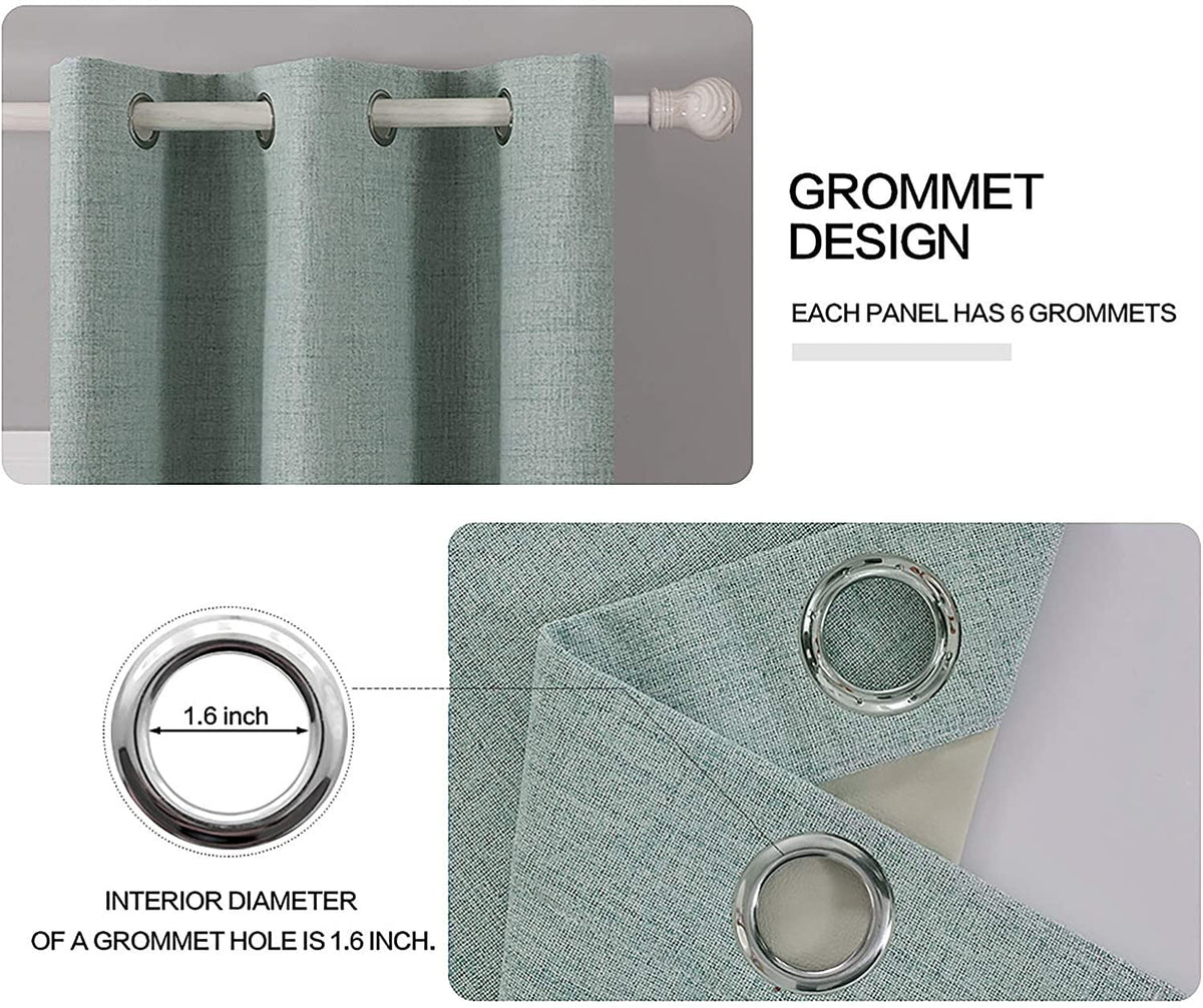 Miulee Linen Blackout Curtains And Drapes 100% Room Darken Thermal Insulated Grommet Window Panels With Coating 2 Pcs W 42 X L 84 Inches Seafoam Green
