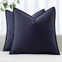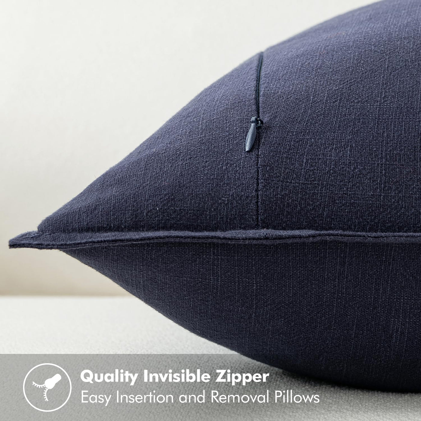 Miulee Linen Pillow Covers 18X18 Inch Navy ?Decorative Boho Farmhouse? ?Neutral Throw Pillows Pack Of 2 Soft Accent Couch Pillowcases Spring Modern Home Decor For Sofa Cushion Livingroom Bed