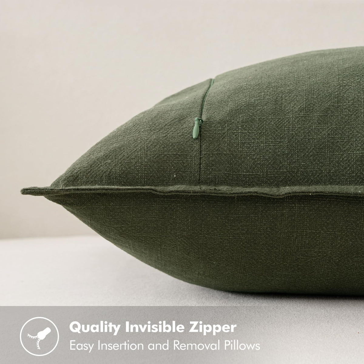 Miulee Linen Pillow Covers 26X26 Inch Dark Olive Green ?Decorative Boho Farmhouse? ?Neutral Throw Pillows Pack Of 2 Soft Accent Couch Pillowcases Spring Modern Home Decor Sofa Cushion Livingroom Bed