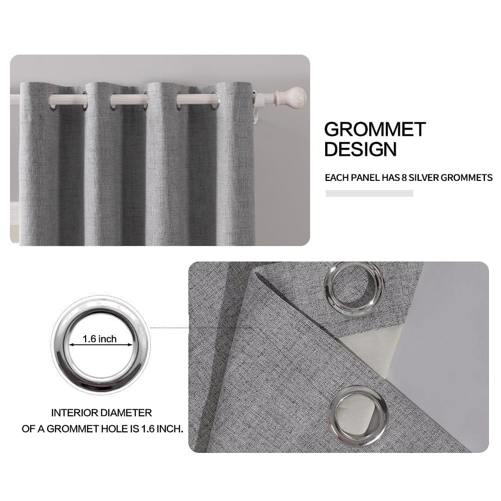Miulee Linen Texture Curtains For Bedroom Solid 100% Blackout Thermal Insulated Grey Curtains Grommet Room Darkening Curtains/Draperies Luxury Decor For Living Room Nursery 52X108 Inch (2 Panels)