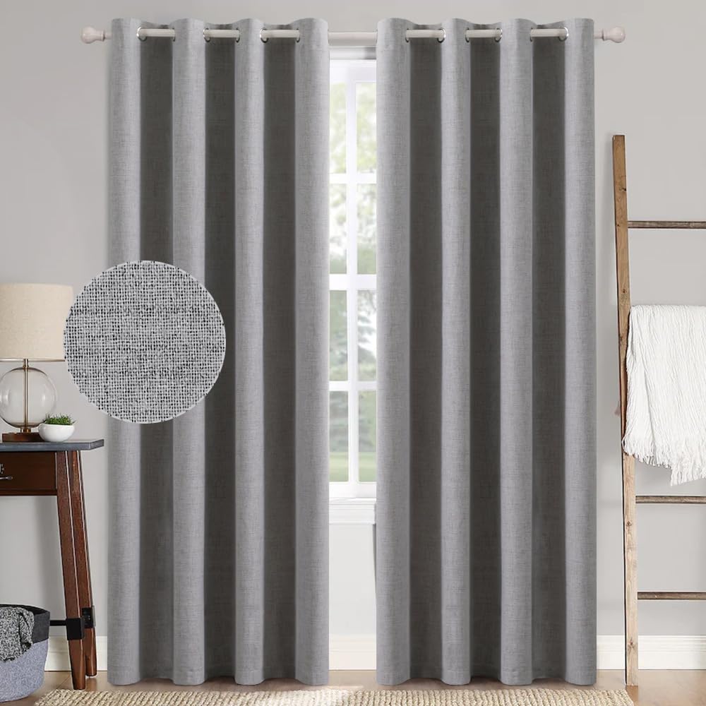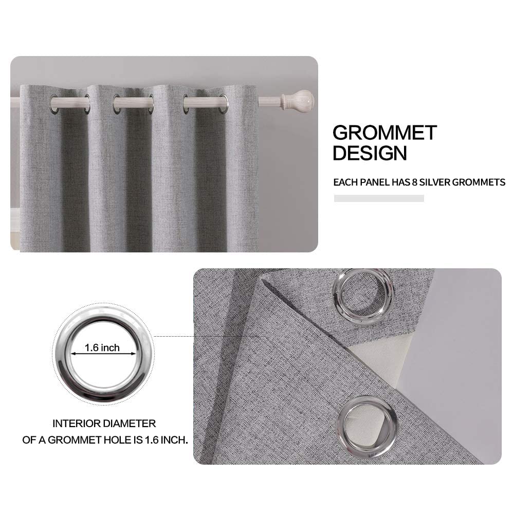 Miulee Linen Texture Curtains For Bedroom Solid 100% Blackout Thermal Insulated Grey Curtains Grommet Room Darkening Curtains/Draperies Luxury Decor For Living Room Nursery 52X72 Inch (2 Panels)