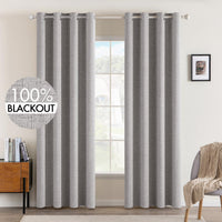 Miulee Linen Texture Curtains For Bedroom Solid 100% Blackout Thermal Insulated Greyish White Curtains Grommet Room Darkening Curtains/Draperies For Living Room Nursery 52X96 Inch (2 Panels)