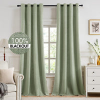 Miulee Linen Texture Curtains For Bedroom Solid 100% Blackout Thermal Insulated Sage Green Curtains Grommet Room Darkening Curtains/Draperies For Living Room Nursery 52X120 Inch (2 Panels)