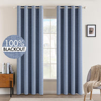 Miulee Linen Texture Curtains For Bedroom Solid 100% Blackout Thermal Insulated Stone Blue Curtains Grommet Room Darkening Curtains/Draperies Luxury Decor For Living Room Nursery 52X96 Inch (2 Panels)