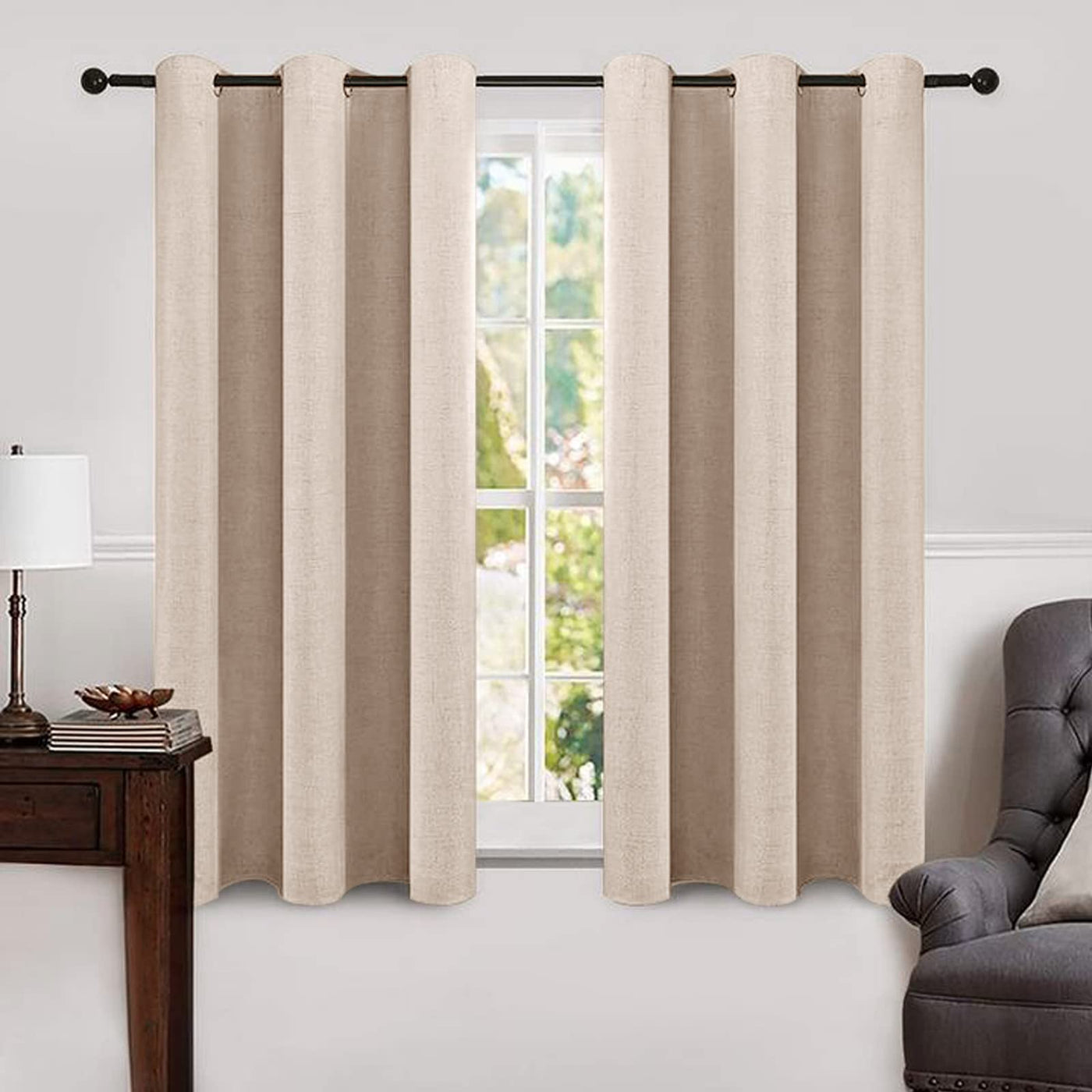 Miulee Linen Texture Curtains Soild 100% Blackout Thermal Insulated Natural Beige Curtains Grommet Room Darkening Curtains & Drapes For Living Room Bedroom Nursery 42 X 63 (2 Panels)